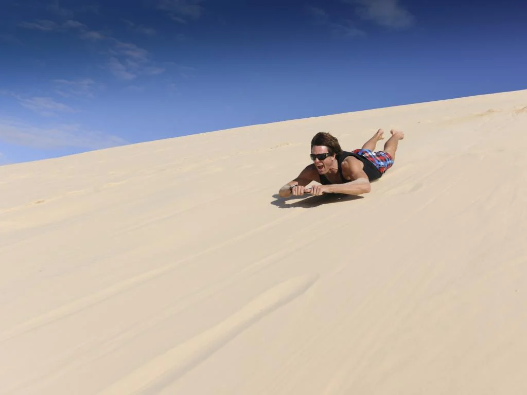 たぶん、タンガルーマ(Tangalooma)のツアーに参加して、砂丘滑りをしました。(下の画像参照)